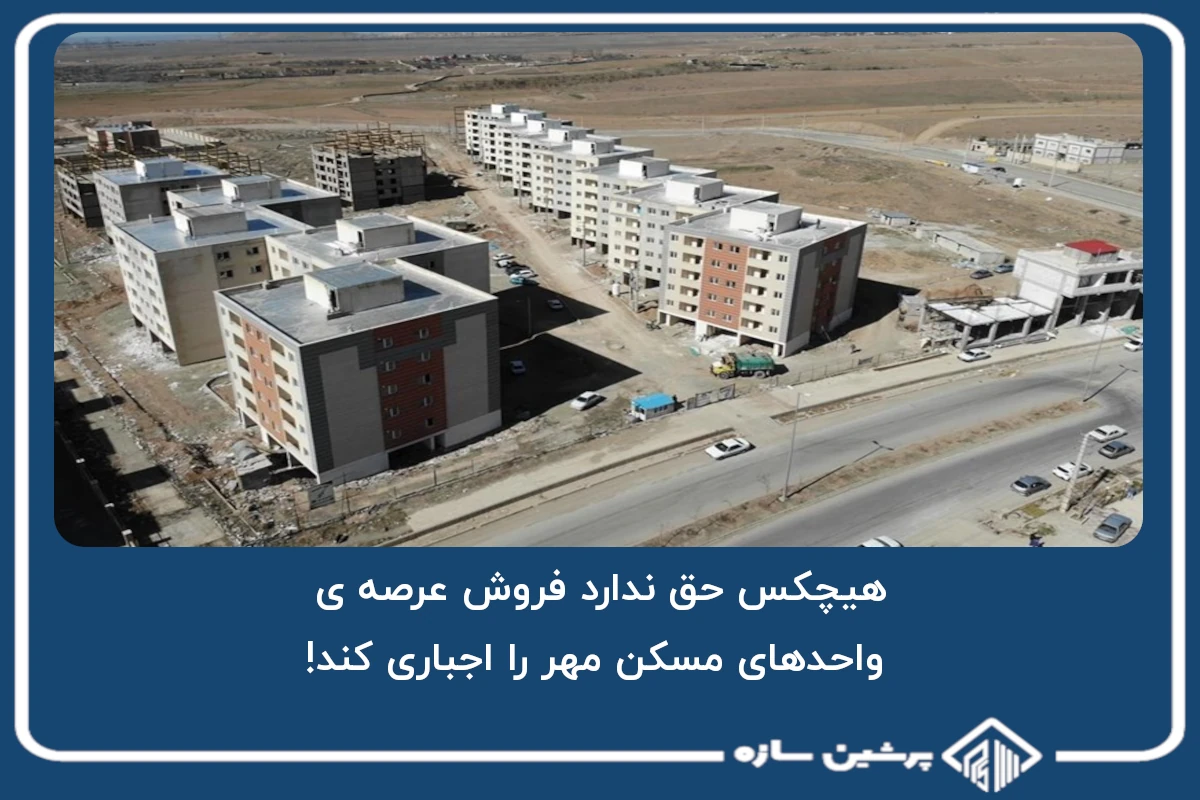 در اوایل مرداد ماه امسال بود که وزیر راه و شهرسازی، در طی یک ابلاغیه، به شرکت عمران شهرهای جدید دستور داد که فروش اجباری عرصه( زمین ملک) واحدهای مسکن مهر به مالکان توسط شرکت عمران و دیگر زیرمجموعه های وزارت راه ممنوع است.