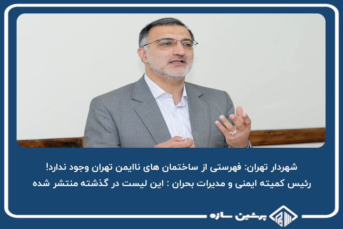 بعد از اظهارات شهردار تهران، رئیس کمیته ی ایمنی شورای شهر تهران چنین اعلام کرد که آنچه تحت عنوان فهرست ساختمان های ناایمن منتشر شده است، کاملا قابل استناد می باشد و از گذشته نیز، چنین فهرستی وجود داشته است.